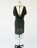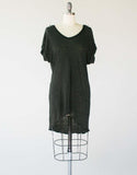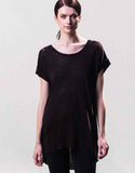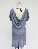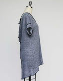 Long-line drape-back top with tie-neck in a sensuous striped linen jersey.