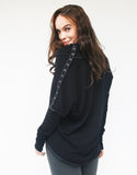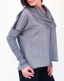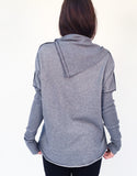 Our best selling 'Essential' Junction sweatshirt in medium weight french terry is great for every season.  The easy fit flatters any and every figure. Designer details include:  fitted long ribbed cuffs, deep versatile side snapped rib collar  can be worn a variety of different ways (see video!). Body is cropped at front mid hip and longer at back for more coverage.