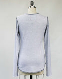 - Shirt tail hemline with cover-stitching and raw edge