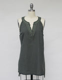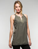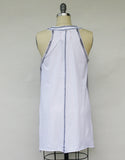 Our mixed-media Tank - striped woven shirting front with solid jersey back.